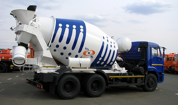 Привод смесительного барабана осуществляется от двигателя шасси с отбором мощности через КОМ. Привод от двигателя шасси значительно улучшает экономические (снижаются расходы топлива, масса технологического оборудования, трудозатраты на техобслуживание), экологические (снижаются выбросы вредных веществ) и эргономические показатели (снижен уровень шума).