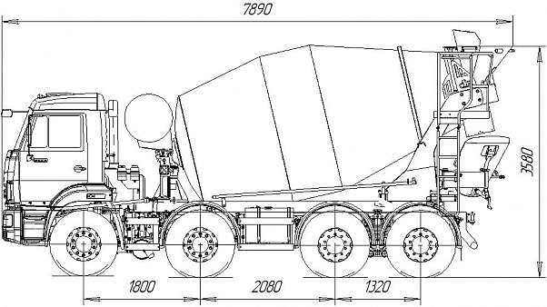 Привод смесительного барабана осуществляется через коробку отбора мощности. Привод от двигателя шасси значительно улучшает экономические (снижаются расходы топлива, трудозатраты на техобслуживание), экологические (снижаются выбросы вредных веществ) и эргономические показатели (снижен уровень шума).