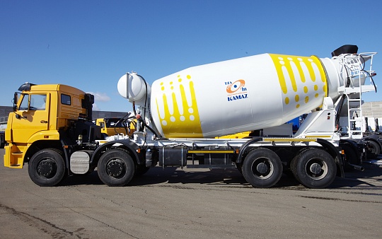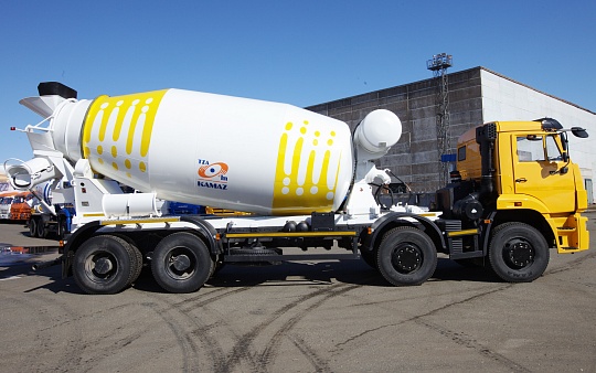 Привод смесительного барабана осуществляется от двигателя шасси с отбором мощности через КОМ. Привод от двигателя шасси значительно улучшает экономические (снижаются расходы топлива, масса технологического оборудования, трудозатраты на техобслуживание), экологические (снижаются выбросы вредных веществ) и эргономические показатели (снижен уровень шума).