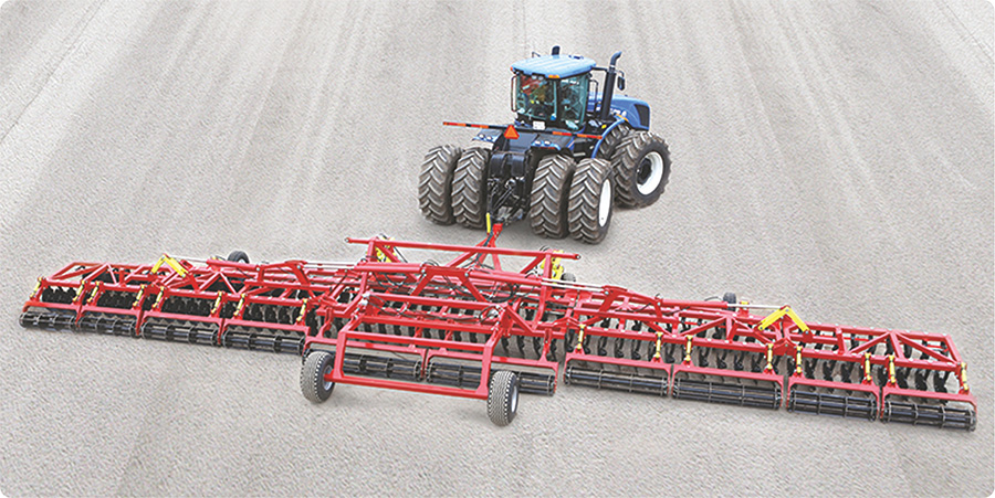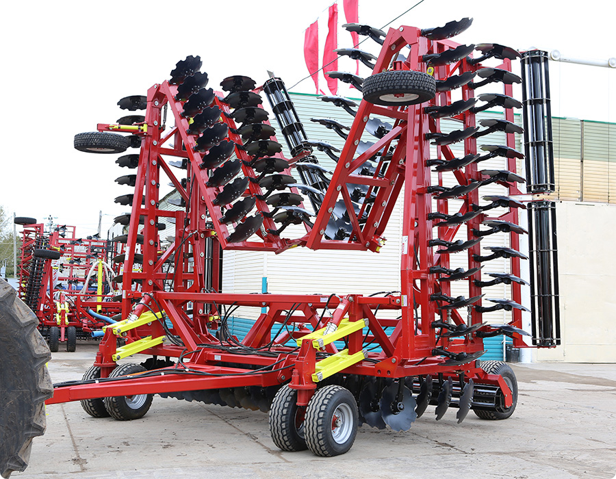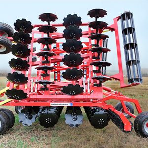 Два ряда тяжелых вырезных дисков диаметром 590 мм на индивидуальных поворотных стойках и прикатывающий каток усиленной конструкции обеспечивают интенсивную и производительную обработку почвы при любых агроклиматических условиях.