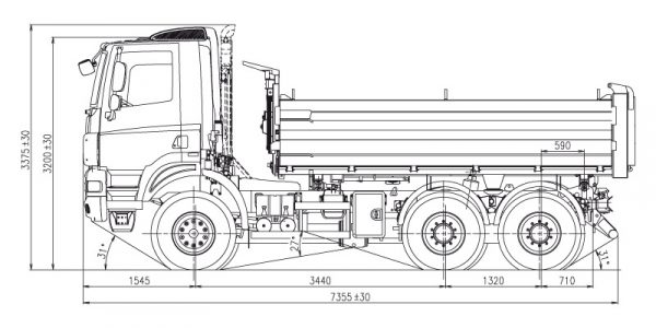 НадстройкиКузов с трехсторонней разгрузкой, объем кузова 10 м3.