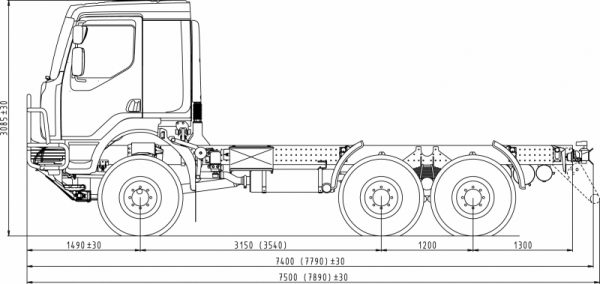 | Длина колесной базы | 3 150 + 1 200 мм |